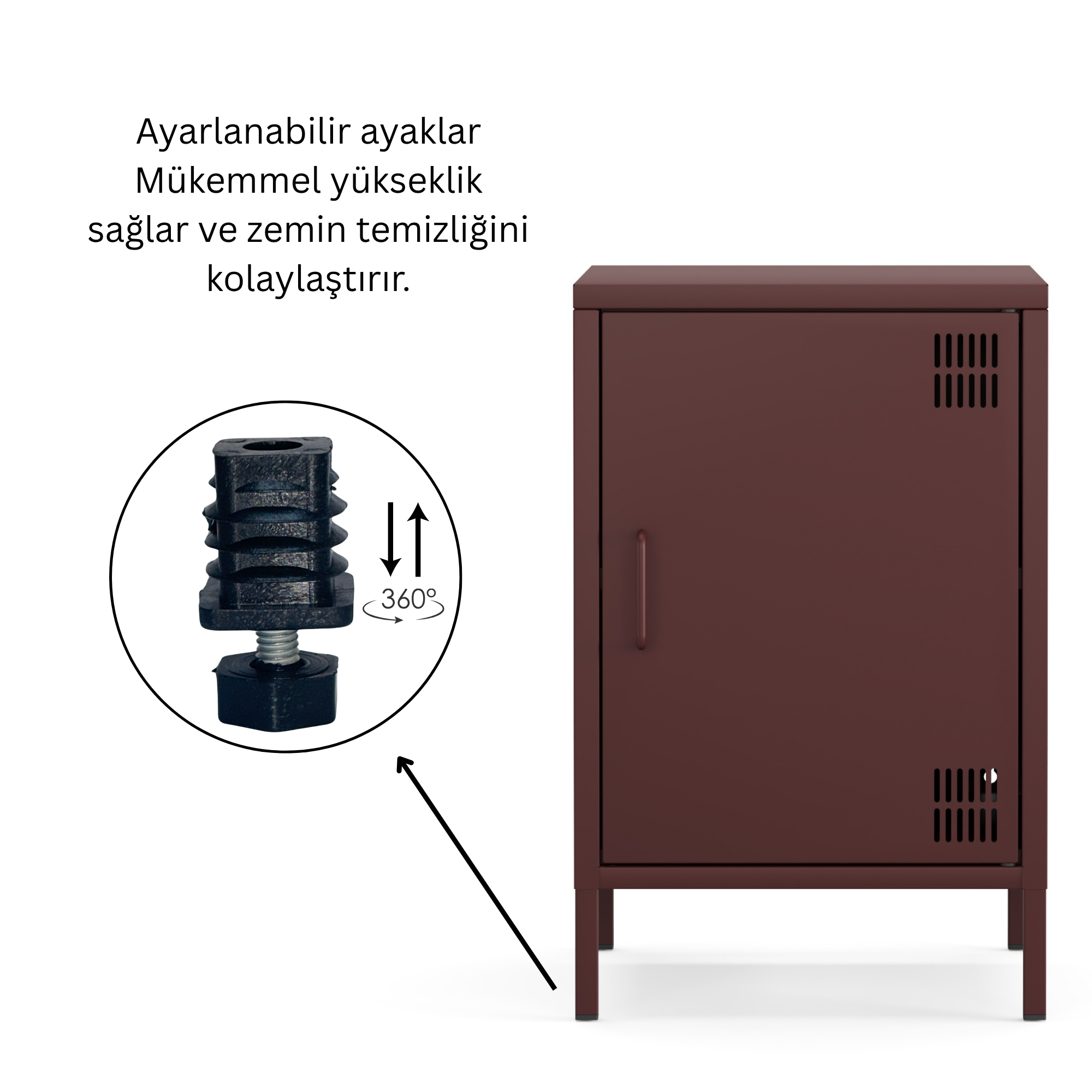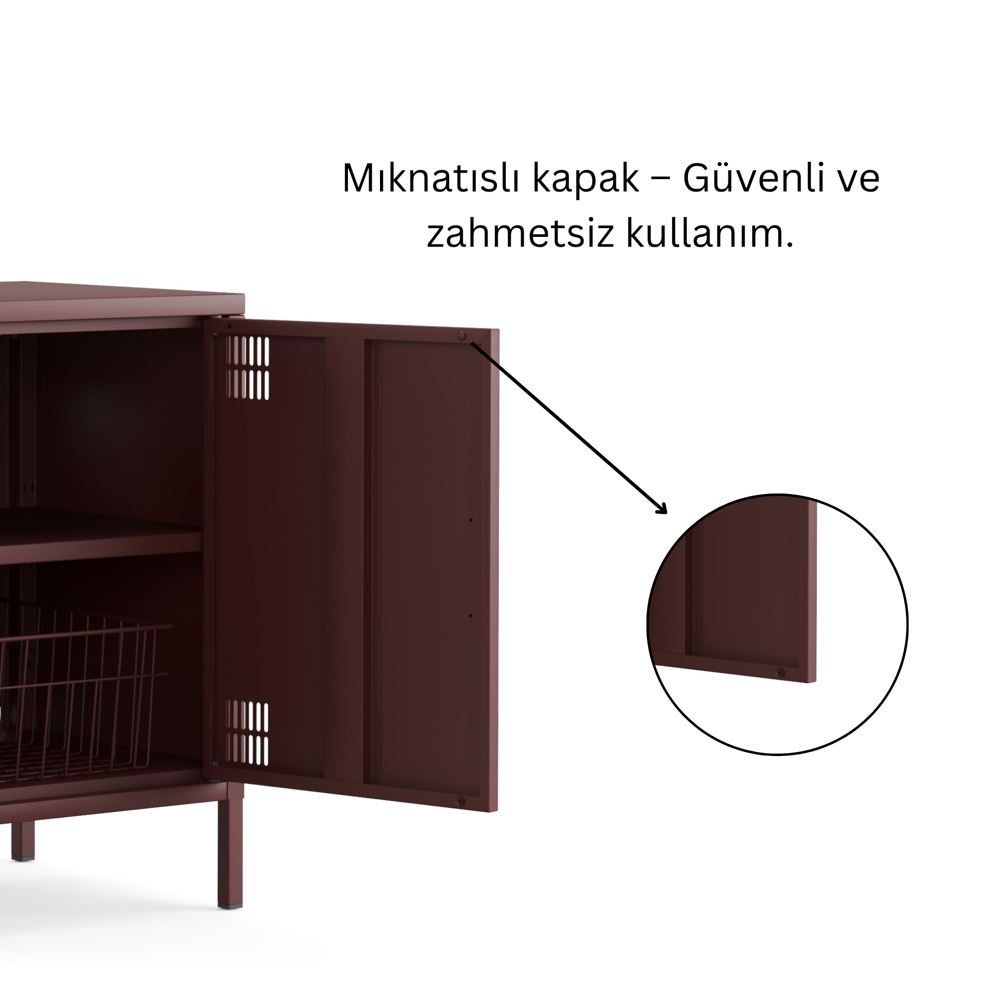 Pera Metal Komodin Kapaklı 41,5 x 40 x 64,50 cm - Ral 3005 Mürdüm Rengi