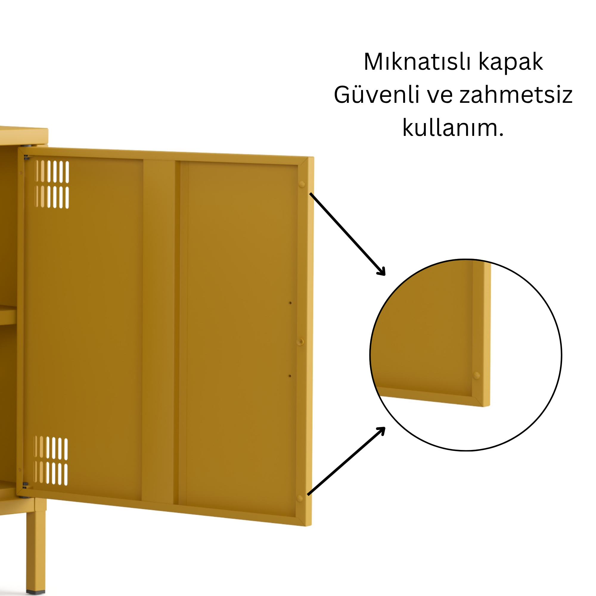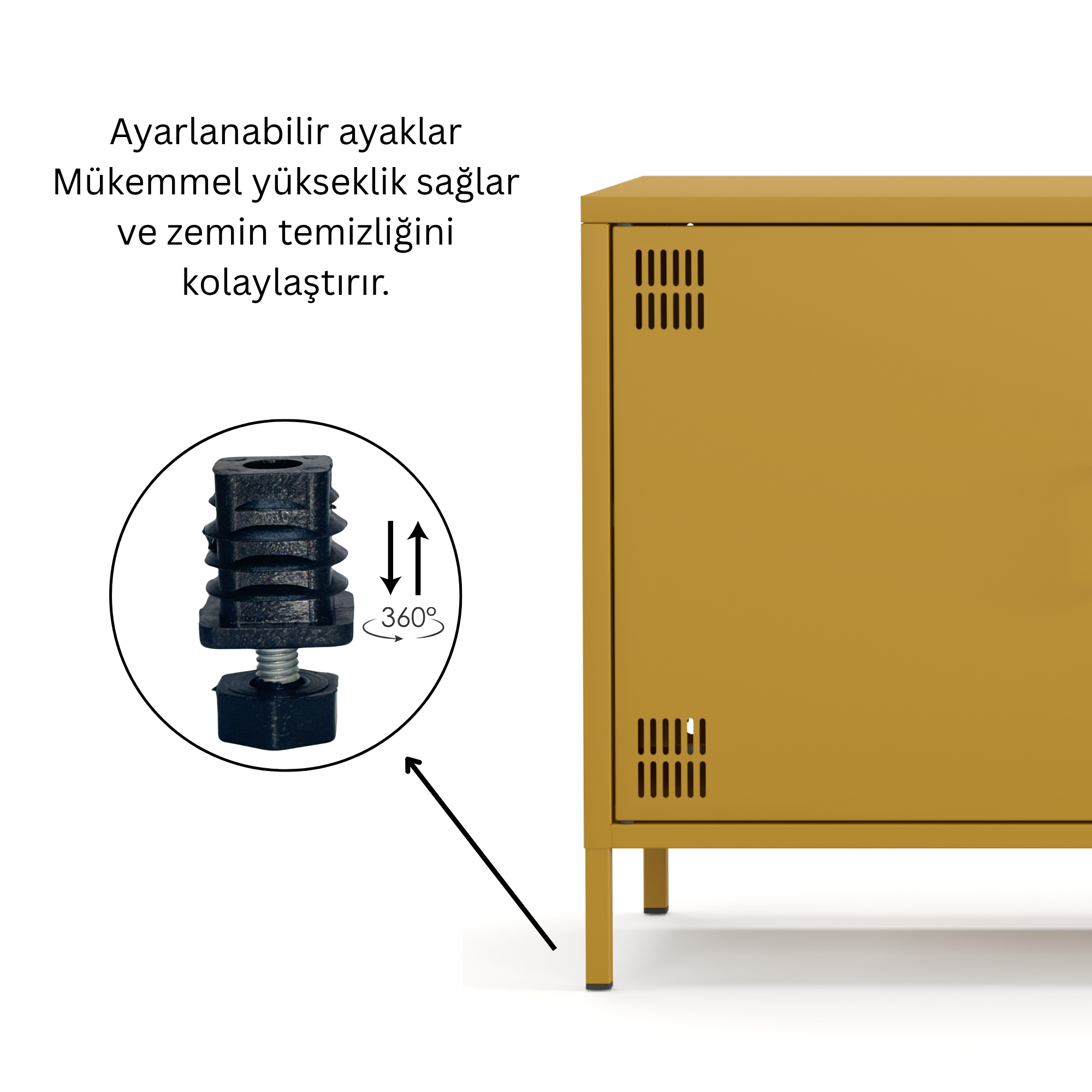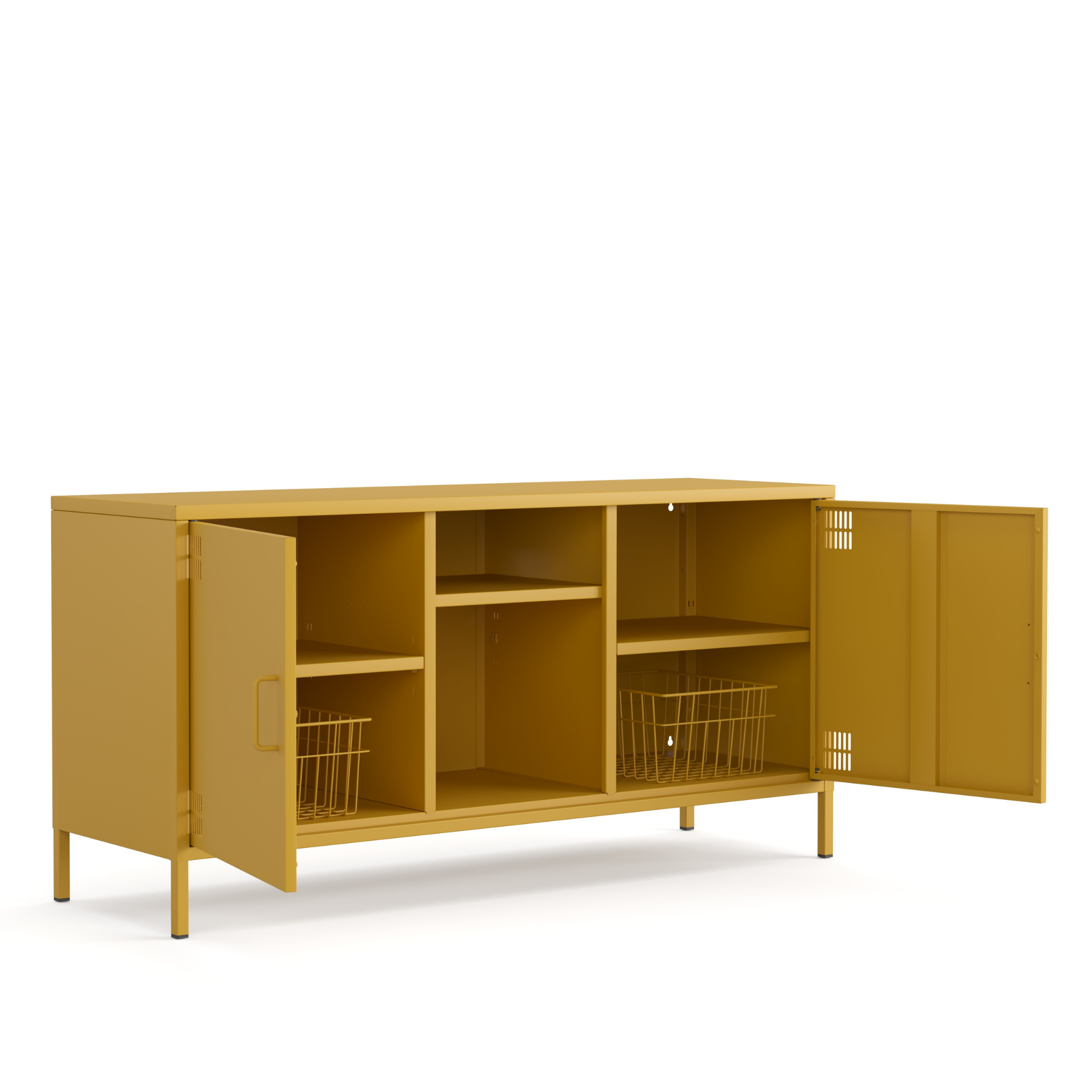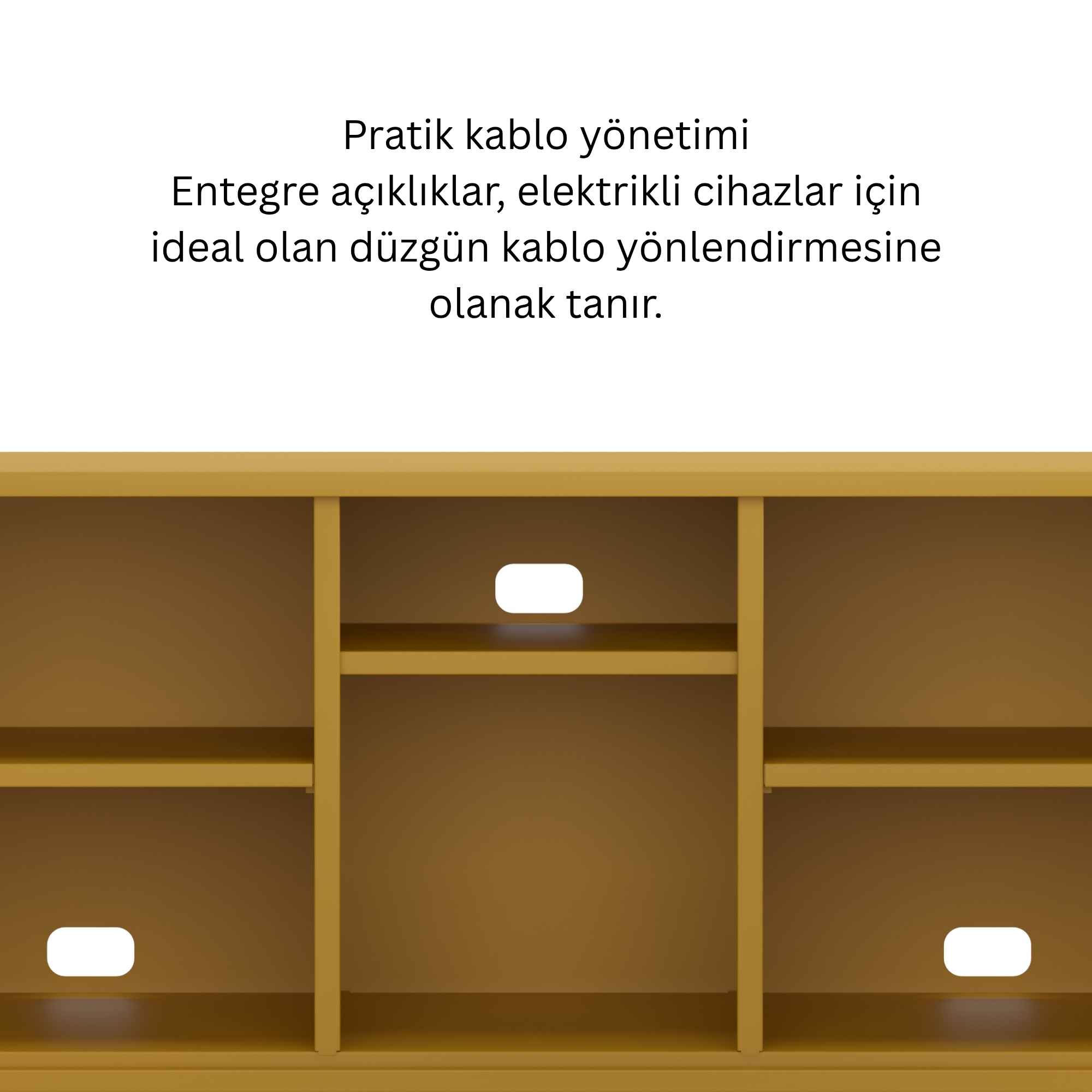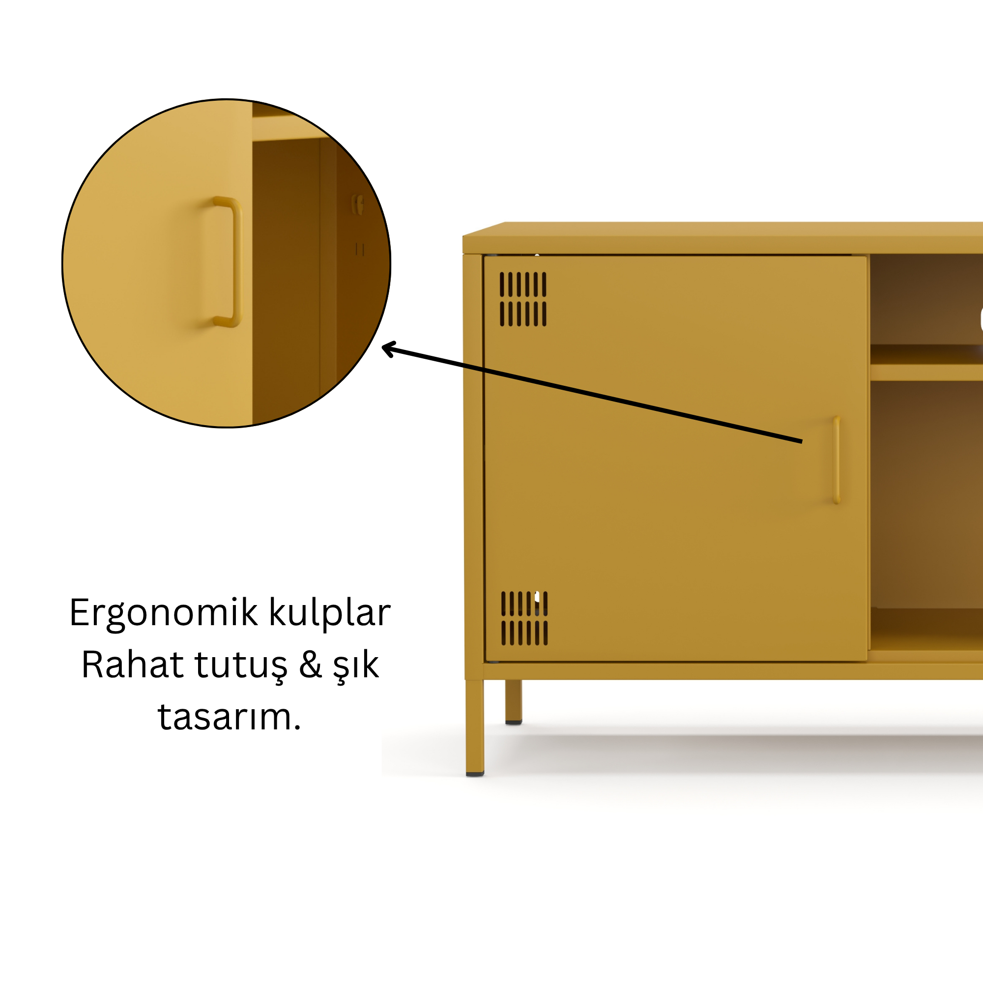 Pera Metal Tv Ünitesi, Tv Dolabı,2 Kapaklı, Açık Raflı 130,50 x 40 x 64,50 cm - Ral 1032 Hardal Rengi